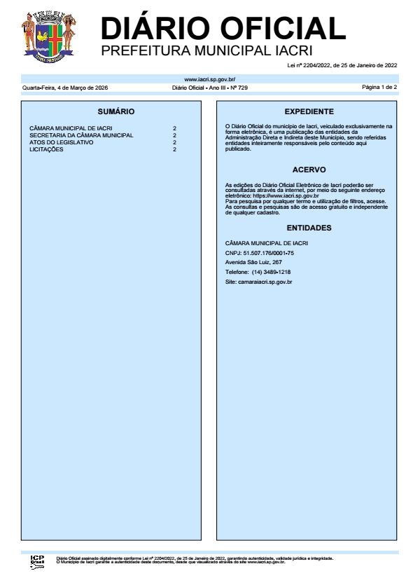 Diário Oficial - PREFEITURA MUNICIPAL DE IACRI