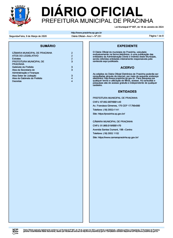 Diário Oficial - PREFEITURA MUNICIPAL DE PRACINHA